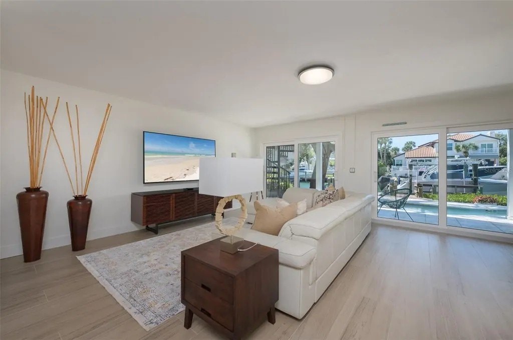 Experience the pinnacle of waterfront luxury on Siesta Key's prestigious Grand Canal. This meticulously reimagined residence at 4938 Commonwealth Drive offers a rare blend of modern sophistication and ultimate peace of mind. The home boasts a comprehensive structural and aesthetic transformation. Step inside to an expansive open-concept layout where the kitchen has been fully redone with a custom beam, walk-in pantry, and a new powder room. Floor-to-ceiling natural light pours through new hurricane-proof windows and sliders, highlighting the designer flooring that runs throughout both levels. The upgrades continue with a brand-new roof, a full solar-power system with battery storage, and a fresh interior palette. The lower level has been completely refreshed with a new bar, designer doors, and a full bathroom/shower addition-perfect for entertaining. Outdoor living is redefined in the backyard sanctuary. Relax by the heated pool and spa featuring a new heater, filtration system, and sleek decking, all framed by professional landscaping and premium artificial turf. For the boating enthusiast, the waterfront features a dock and boat lift on the deep-water Grand Canal, providing effortless access to the Intracoastal and Sarasota Bay.
